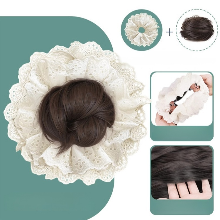 โดนัทผมขนาดใหญ่พิเศษ ประดับลูกไม้สองชั้น แบบผมปลอมสำหรับมวยผม
